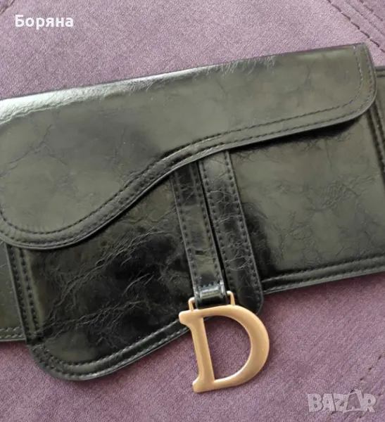 Страхотен дизайнерски широк колан за кръст - с разтегателна ластична част при гърба и кожена част отпред. Малка чантичка тип портмоне по модел на топ бранд - DIOR.
