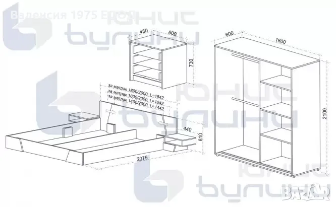 Спалня с нощни шкафчета за матрак 160/ 200 : 252/ 207,5/ Н81 см;