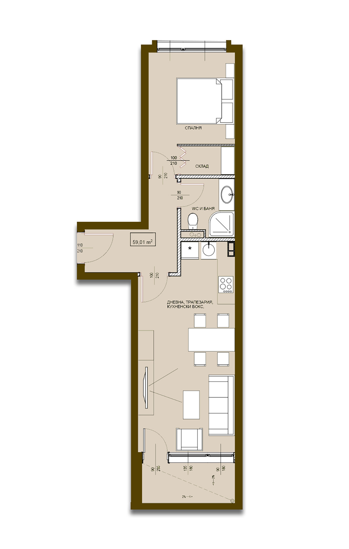Сградата ще се състои от два входа А и Б с апартаменти, гаражи и паркоместа. Апартаментите се предлагат до ключ с възможност за довършване до ключ или обзавеждане.