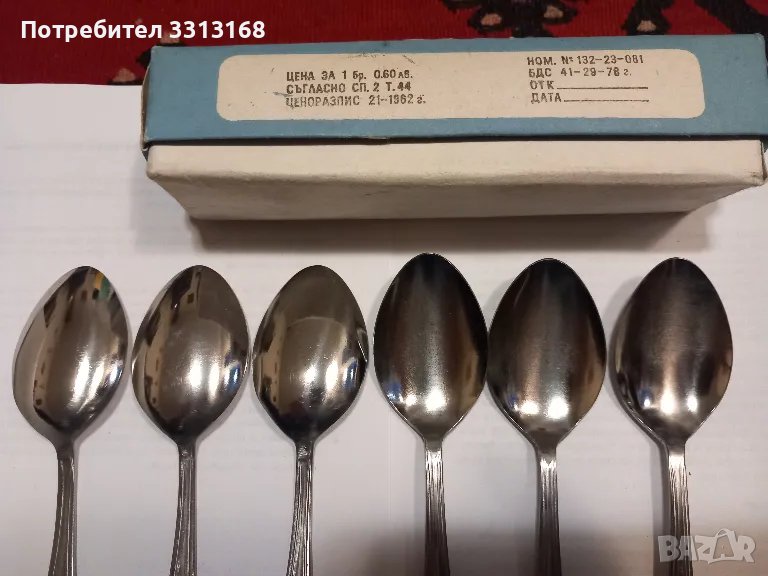 Супени лъжици от неръждаема стомана с надпис българско производство от времето на соца, чисто нови неизползвани 24 бр. Цената е за брой. Продават се минимум 6 бр.