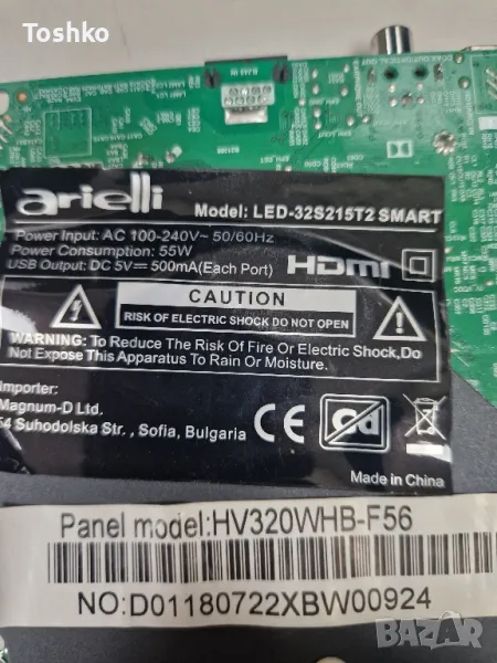 Свалени от работещ телевизор със спукана матрица ТВ ARIELLI LED-32S215T2 SMART