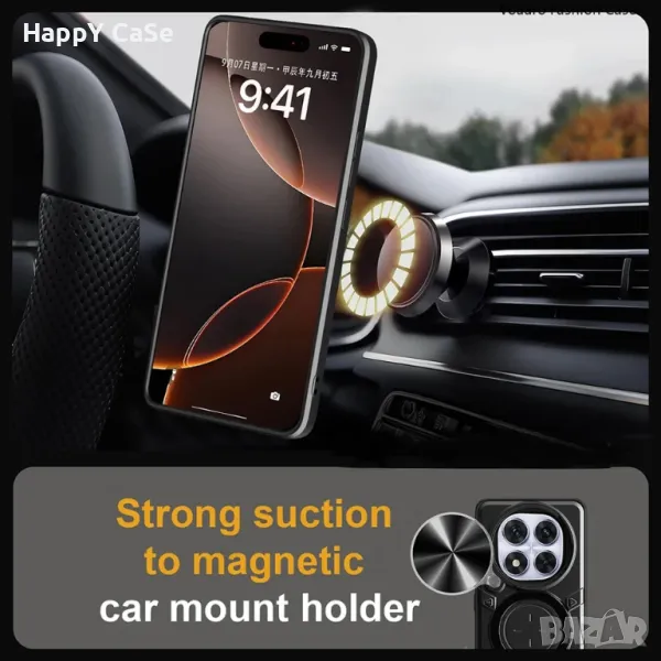 3. Възможност за закрепване към магнитна стойка в автомобил, осигурена от метална пластина поставена вътре в кейса