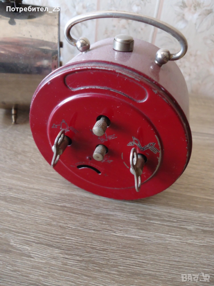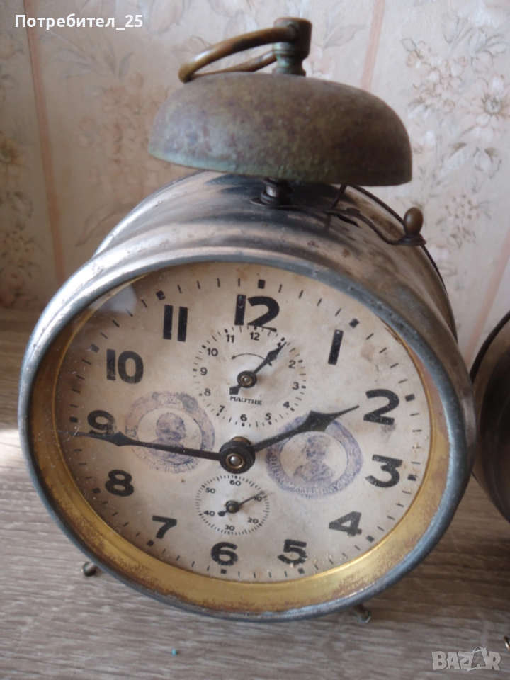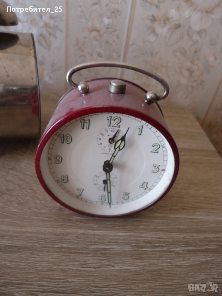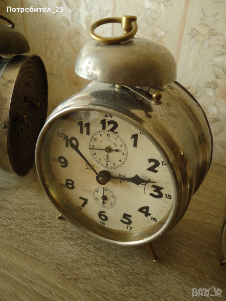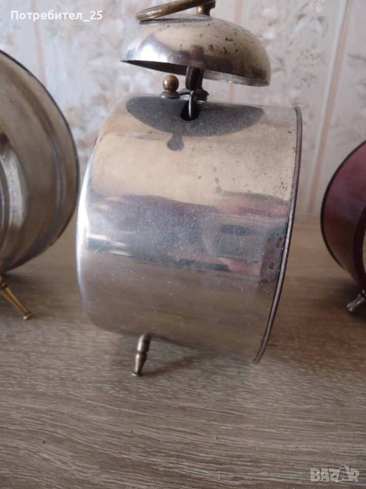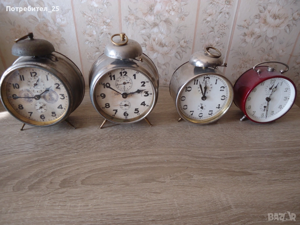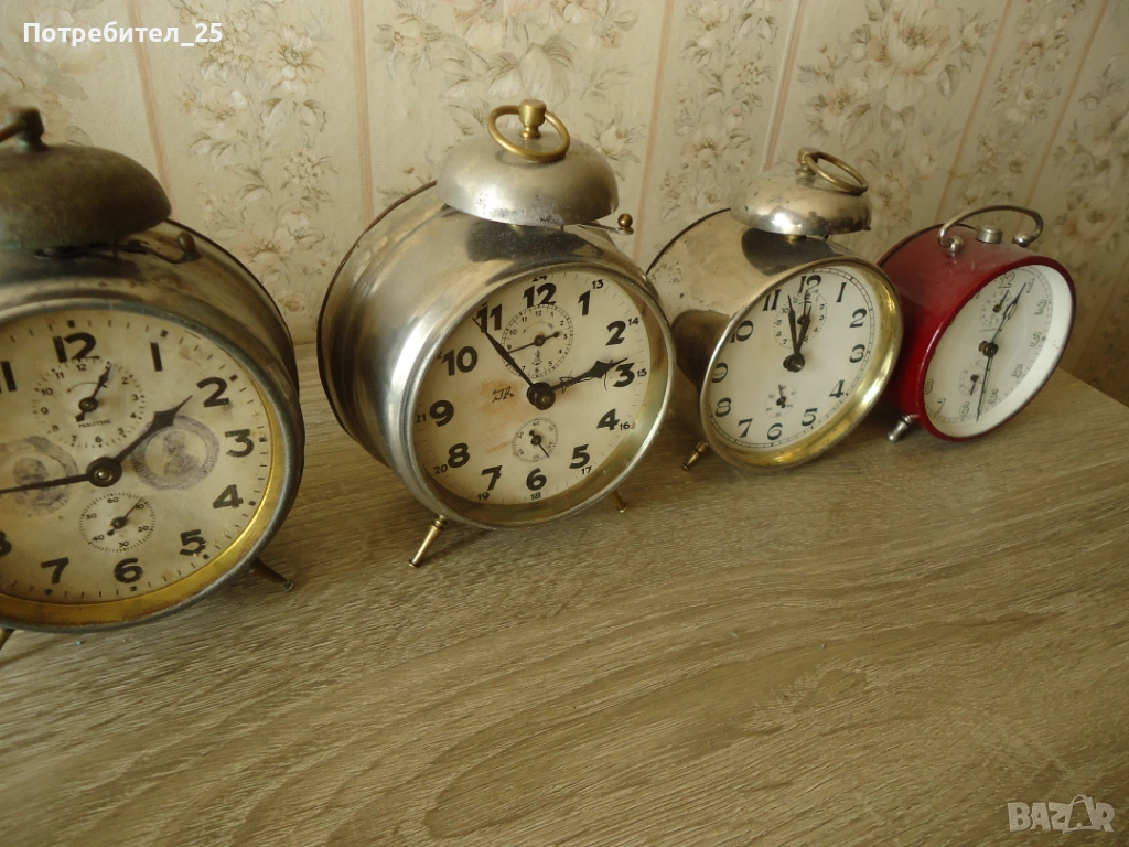 Првият от лаво на дясно - MAUTHE работи отлично ,тресчотката напружината за звънеца понякога изпуска. Липсват врътките са сверяване цена- 19 евро. Вторият е Густав Бекер и е в отлично състояние - цена 25 евро. Третият няма означения но мисля че е Юнгханс в отлично състояние цена - 20 евро. Четвъртият е Юнгханс също в отлично състояние цена- 20 евро. Разгледайте снимките.