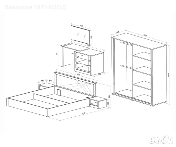 * Допълнително може да се поръча скрин( тоалетка) с огледало+ 299 лв и табуретка+ 87 лв;