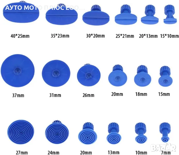 Комплектът за отстраняване на вдлъбнатини се състои от висококачествен инструмент за издърпване и аксесоари/приставки с различни размери. Позволява Ви ефективно и прецизно премахване на вдлъбнатини по каросерията на превозните средства, без да е необходимо боядисване. Това е идеалното решение за вдлъбнатини от градушка, удари или други случайни повреди.