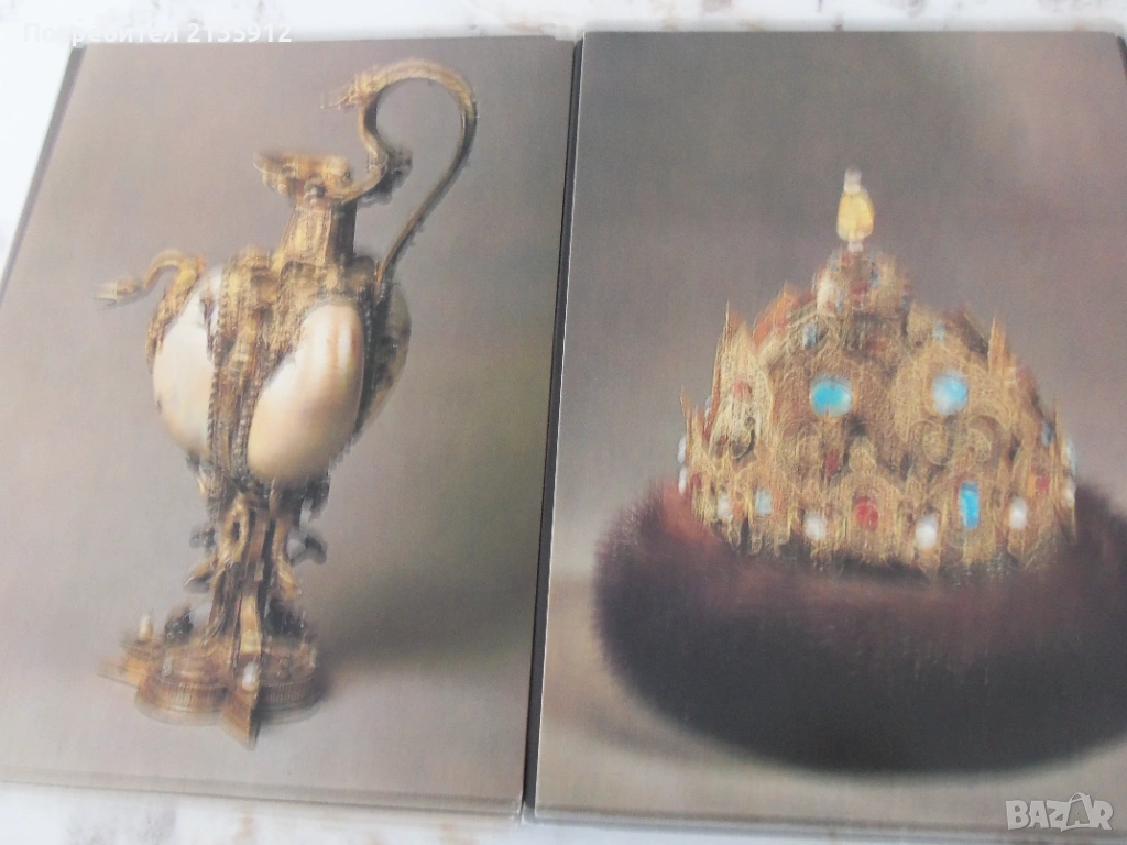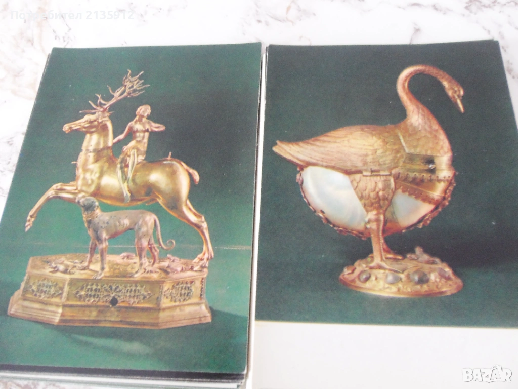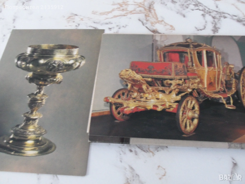 2.Комплект от 16 картички с изображение на ценни предмети от Оръжейната палата в Кремъл, Москва с текст на английски и руски език.