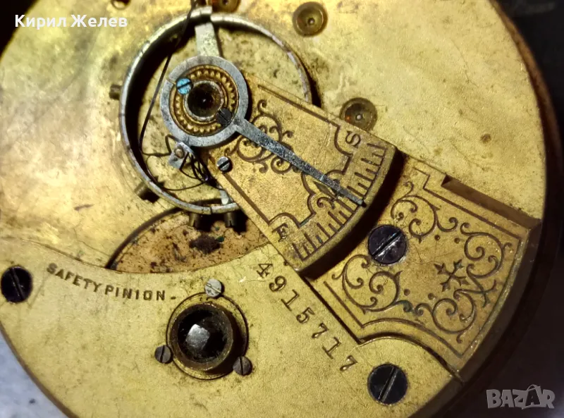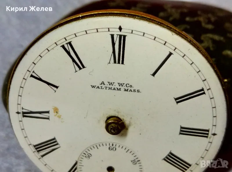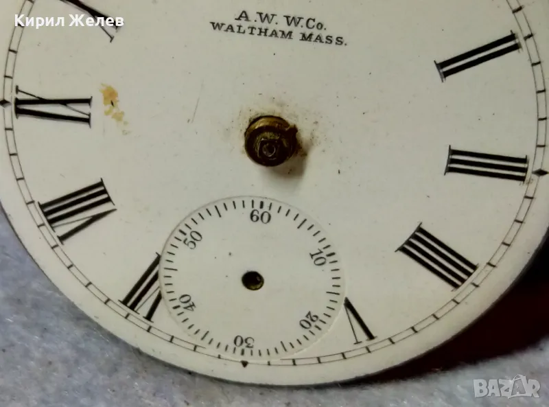A. W. W.Co. WALTHAM MASS. МЕХАНИЗЪМ от СТАР АМЕРИКАНСКИ ДЖОБЕН ЧАСОВНИК с РИМСКИ ЦИФЕРБЛАТ 40364
