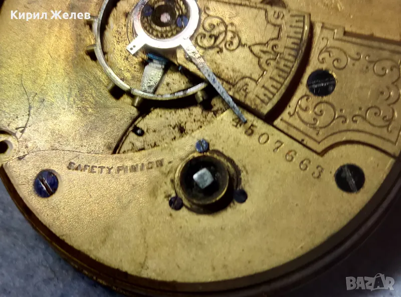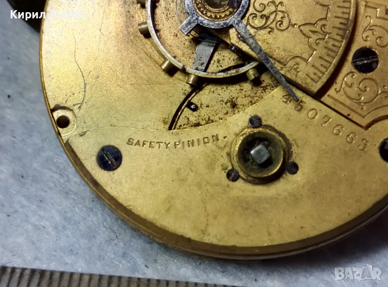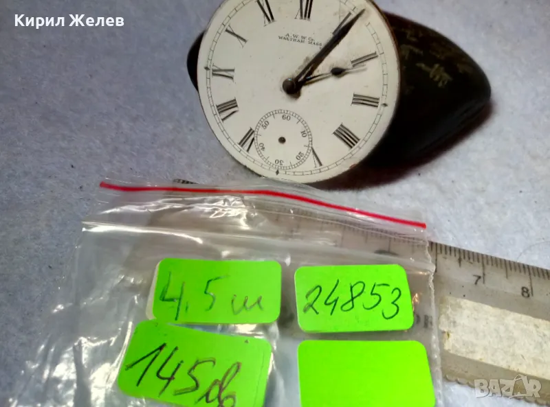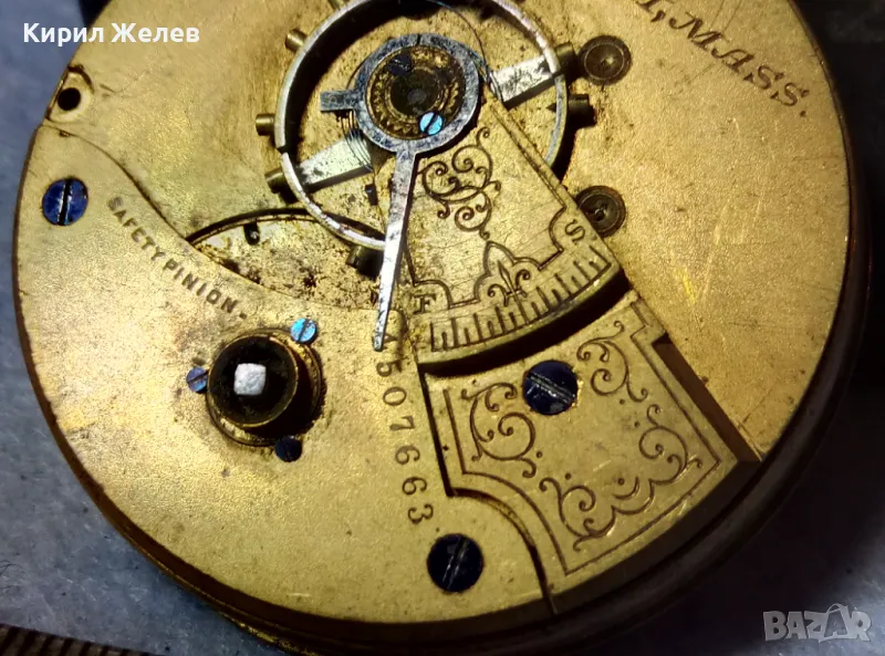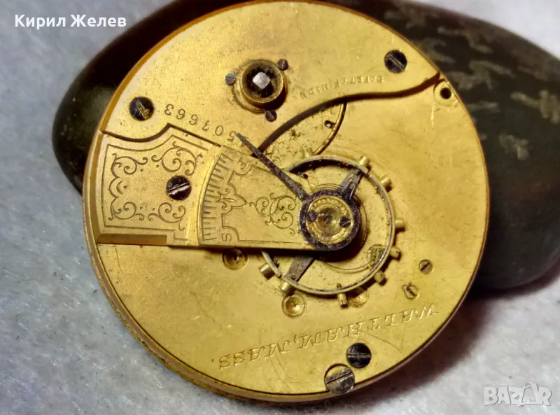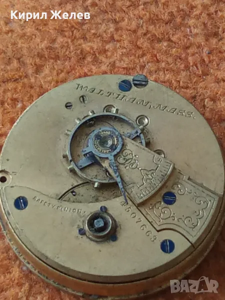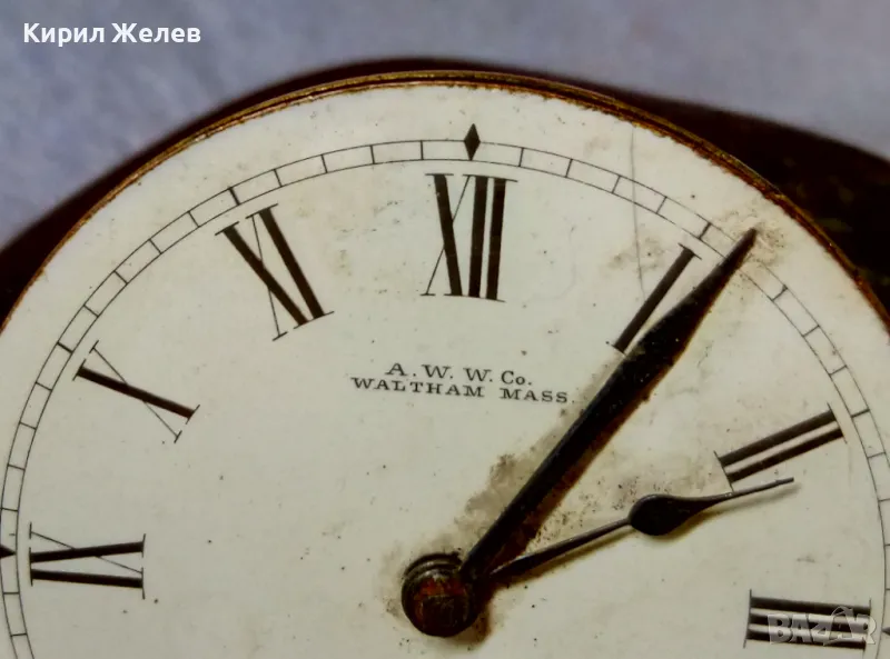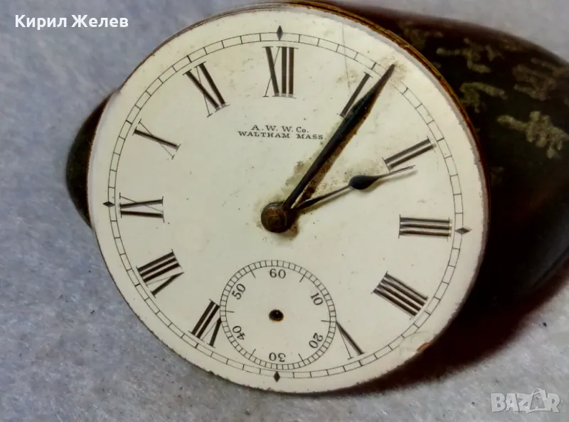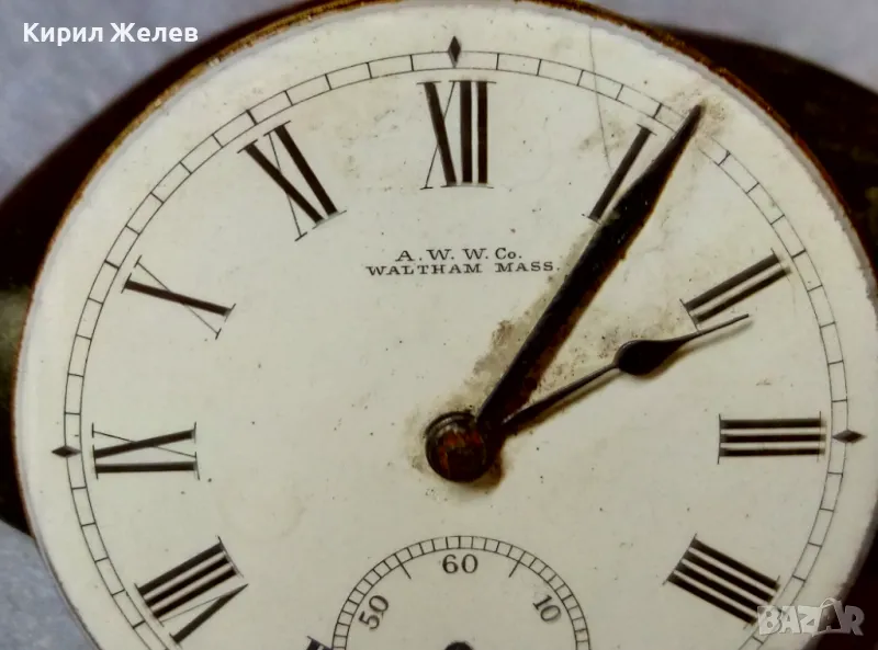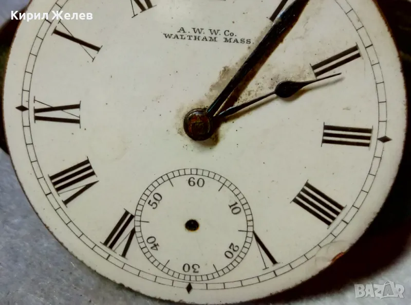 A. W. W.Co. WALTHAM MASS. МЕХАНИЗЪМ от СТАР АМЕРИКАНСКИ ДЖОБЕН ЧАСОВНИК с РИМСКИ ЦИФЕРБЛАТ 24853