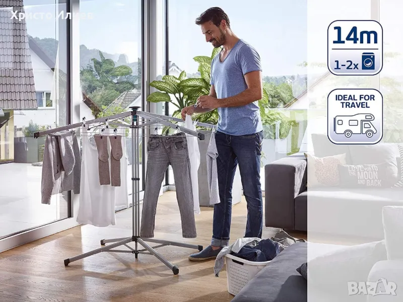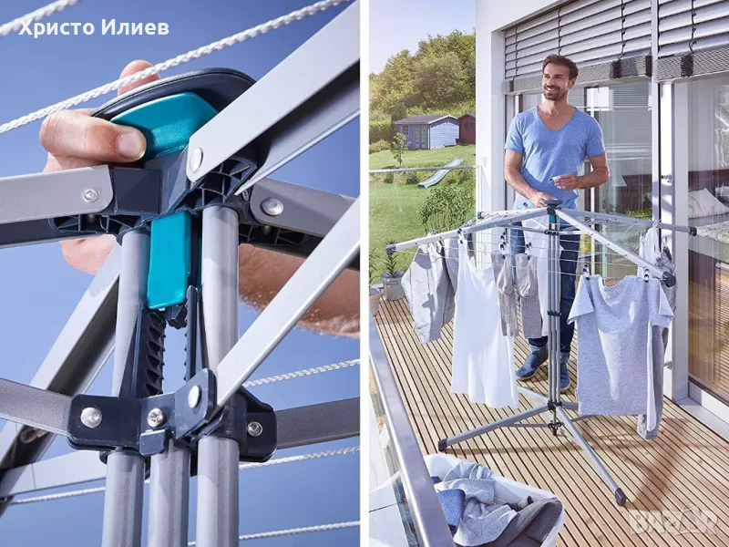 - Спестяване на електроенергия в дома - естествено сушене без електричество, използвайки ротационната сушилня Leifheit, пести енергия и защитава околната среда и прането