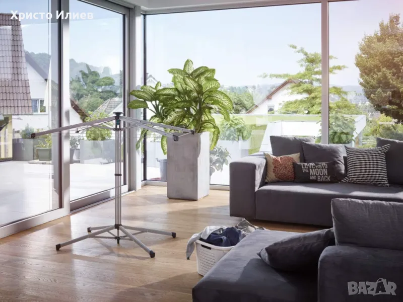 - Дълга линия - Вътрешната линия за пране има 14 m дължина на линията и височина на най-външната линия от 95 cm. Предлага място за повече от едно зареждане на пералня