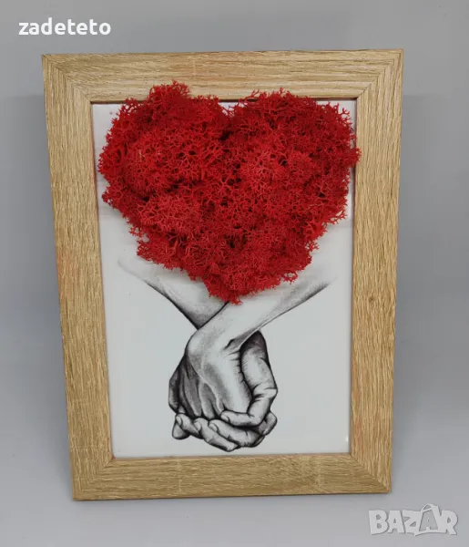 Картина за Свети Валентин със скандинавски мъх → Обява 48581393