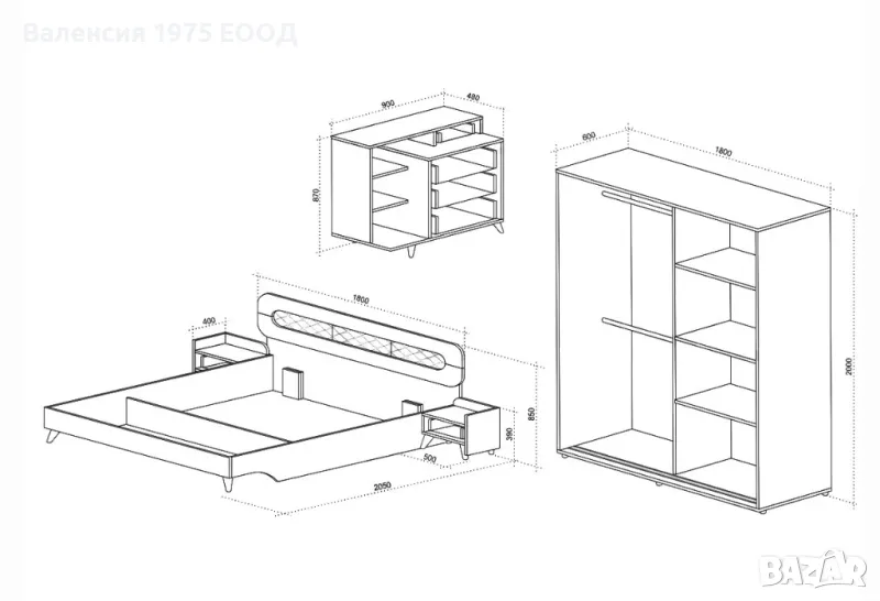 Спалня с нощни шкафчета : 270/ 205/ Н85 см;