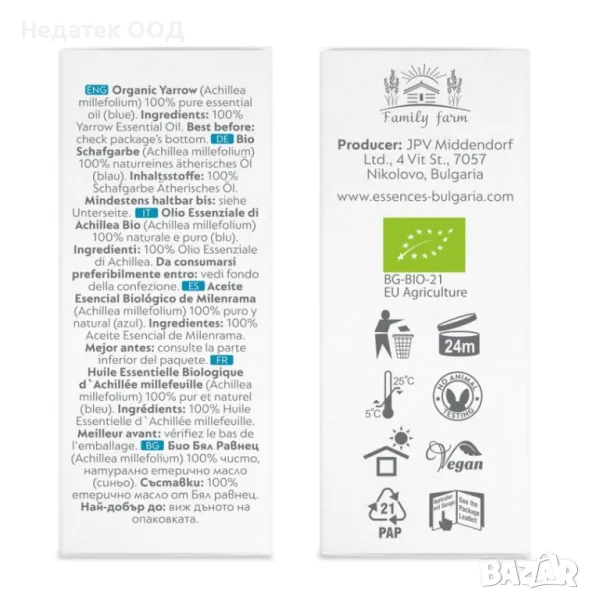 Био етерично масло Бял равнец – срещу екземи, рани и изгаряния, 5ml, снимка 1 - Други - 48581843 Био етерично масло Бял равнец – срещу екземи, рани и изгаряния, 5ml, снимка 2 - Други - 48581843 1/2