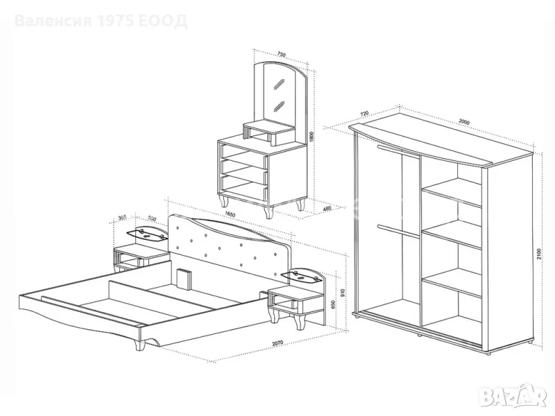 * Допълнително може да се поръча тоалетка с огледало+ 372 лв;