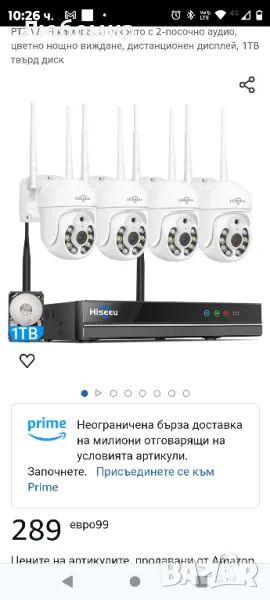 5MP PTZ + 1TB HDD: Hiseeu 5MP WLAN камера за външно наблюдение с 10CH безжичен NVR, 4 x 5MP PTZ Wi-Fi камера на открито с 2-посочно аудио, цветно нощно виждане, дистанционен дисплей, 1TB твърд диск.5MP разделителна способност + цветно нощно виждане: наборът от външни WiFi камери за наблюдение на Hiseeu с 5MP HD резолюция, по-добра от 5MP, получавате плавен и ясен видео дисплей, запис и възпроизвеждане. Оборудван с 4 бели светодиода, комплектът външна wifi камера показва ясно изображение дори през нощта, 2 вида режим на нощно виждане. na: Нощно виждане с цветове и инфрачервено нощно виждане, разстояние за нощно виждане до 65 фута.PTZ + 10CH разширяем: Комплектът за видеонаблюдение Hiseeu WiFi с 2 PTZ камери (pan tilt zoom) и 2 външни WiFi камери. PTZ означава Pan 90°, Titl ротация 320° и 5X цифрово увеличение, PTZ камерата може да се върти дистанционно нагоре, надолу, наляво и надясно с мобилен телефон. Комплектът камера за видеонаблюдение покрива множество зони, за да защити вашето имущество. 10CH NVR поддържа до 10 камери.Откриване на движение + аларма за приложение: Когато камерата засече движение навън, комплектът WiFi камера изпраща незабавно известие с моментна снимка до телефона и звук на сирена и бяла светлина, за да изплаши непознати. Комплектът за WiFi видеонаблюдение също ви позволява да регулирате чувствителността на засичане на движение и да програмирате времето за засичане на движение. Ако има твърде много сензор за движение за откриване, можете да регулирате чувствителността.Двупосочно аудио + IP66 водоустойчивост: Комплектът камера за наблюдение Hiseeu има вграден микрофон и високоговорител, можете да говорите със семейството или приятелите си по всяко време и да ви помогне да изплашите непознати. Можете също така да получавате гласа около камерата, за да записвате аудио. Комплектът камери за външно наблюдение на Hiseeu е водоустойчив IP66 и може да издържи на всички видове сурово време, независимо от дъжд или слънце, топлина или студ.