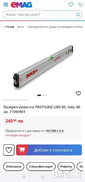 Нивелирът е уникален - точен, удобен, здрав и в същото време лек и красив. Точката на лазера e ярка и ясно отличима върху всякакви порърхности, които не пропускат светлина.