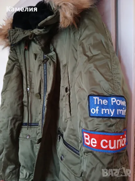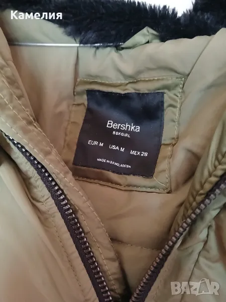 Дамско яке Bershka. С качулка с пух. Зелено. Размер М. Като ново е.