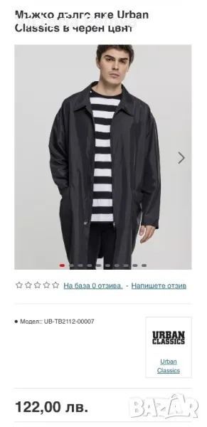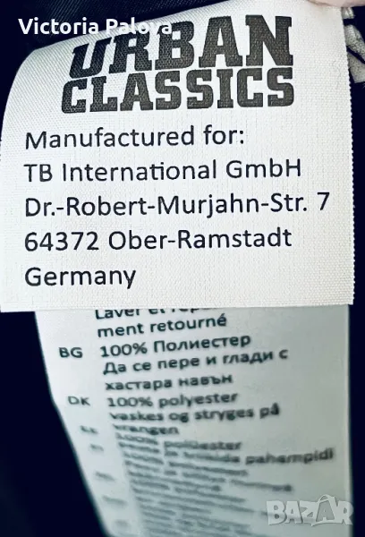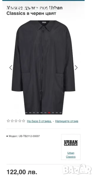 Urban classics е най-големият немски производител на улична градска мода. Якето е с дълга кройка, изработено от много лека материя, закопчава се с цип. Рамо - 60см, ГО - 66см, дължина - 97см, ръкав - 58см.