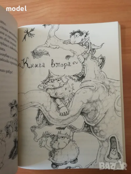 брада, Полуобувка и Маншон. Те бяха толкова дребни на ръст, че когато се събраха при продавачката на сладолед, тя ги взе за някакви джуджета от приказките. Пък и наистина правеха странно впечатление. Мъхеста брада имаше мека брада от мъх, по която растяха чудесни червени, макар и миналогодишни, боровинки. Полуобувка носеше обувки с отрязани носове, та да може да върти накъдето поиска пръстите на краката си. А Маншон бе навлякъл огромен Маншон, от който навън стърчаха само върхът на главата и