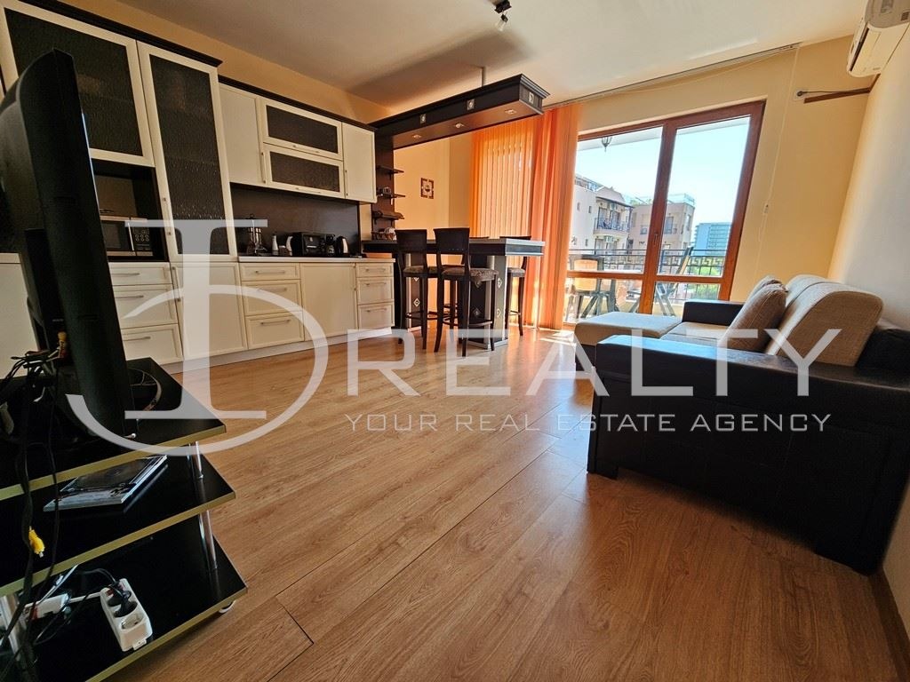 D Realty има удоволствието да Ви представи прекрасен тристаен апартамент в затворен комплекс в к.к. Слънчев бряг. Апартаментът се състои от антре, хол с кухненски кът, две спални, баня с тоалетна и две тераси с гледка към басейна. Издава се обзаведен и готов за живеене. Жилището се намира в затворен комплекс с басейн, асансьор и контролиран достъп. Годишната такса поддръжка е 8 на кв.м.. Подходящ е както за целогодишно живеене, така и с цел инвестиция за отдаване под наем.