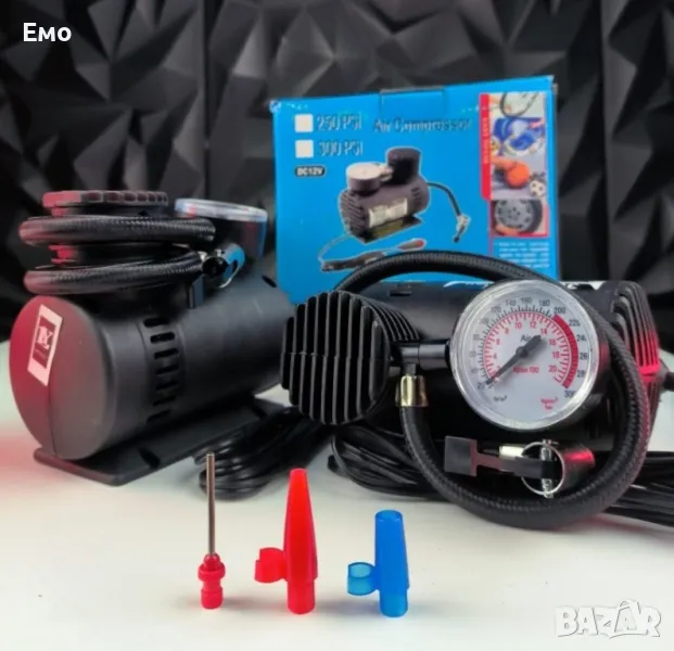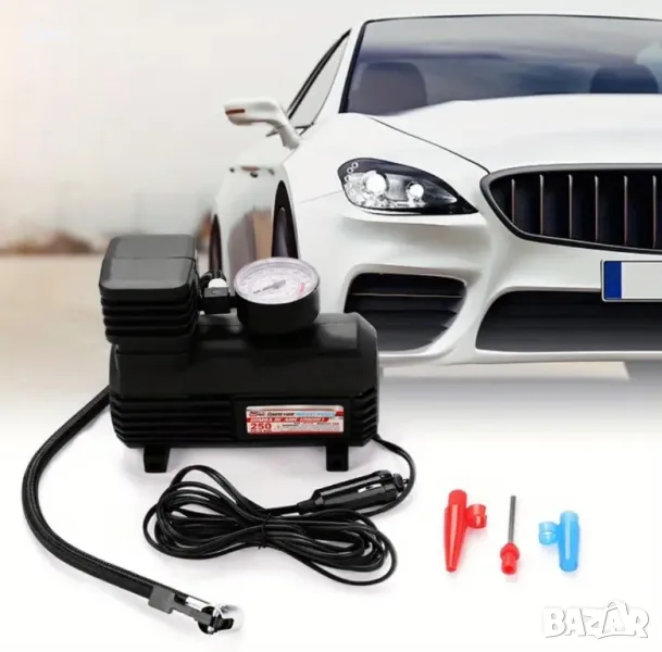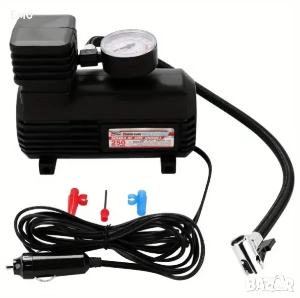 Компресор с манометър за леки автомобили, велосипеди, топки, надуваеми басейни и др.