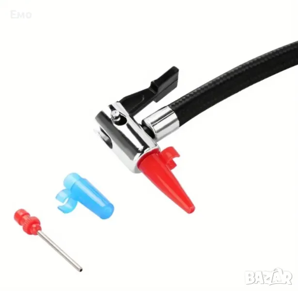 Комплекта включва три накрайника за помпане: топки, вело гуми и други.
