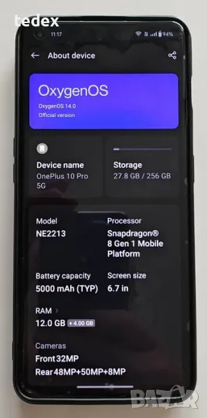 Операционна система: Android 12, OxygenOS 12.1