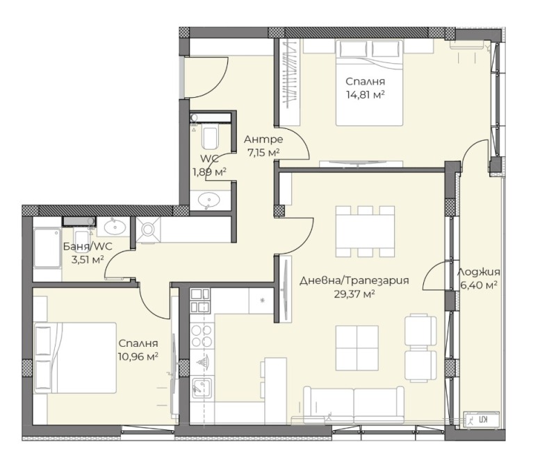 Оф.77718Б БЕЗ ХОНОРАР ОТ КУПУВАЧА! Предлагаме Ви тристаен апартамент, в нова модерна сграда с Акт 16, в кв. Смирненски. ОФЕРТАТА СЕ ПРЕДЛАГА САМО ЗА ЧАСТНИ ЛИЦА! Жилището се намира на трети етаж и е с площ от 127 кв.м. Имотът има следното разпределение: