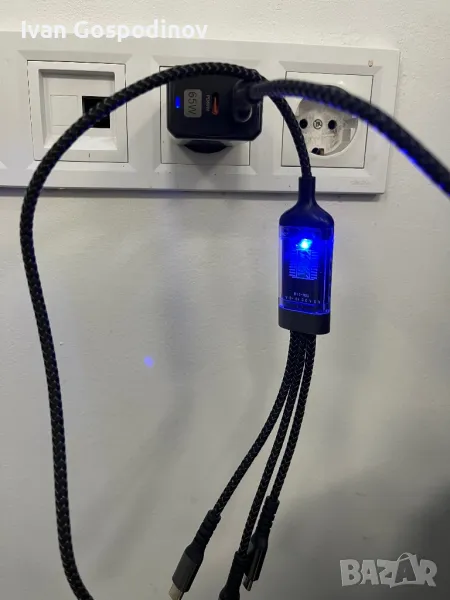 PD 65W Max + кабел 2 м /100 W с 3 изхода , usb-type C и айфон !