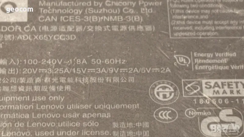Lenovo ново оригинално Type-C зарядно 65W (5/9/15V-65W.Комплект)