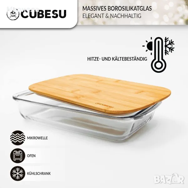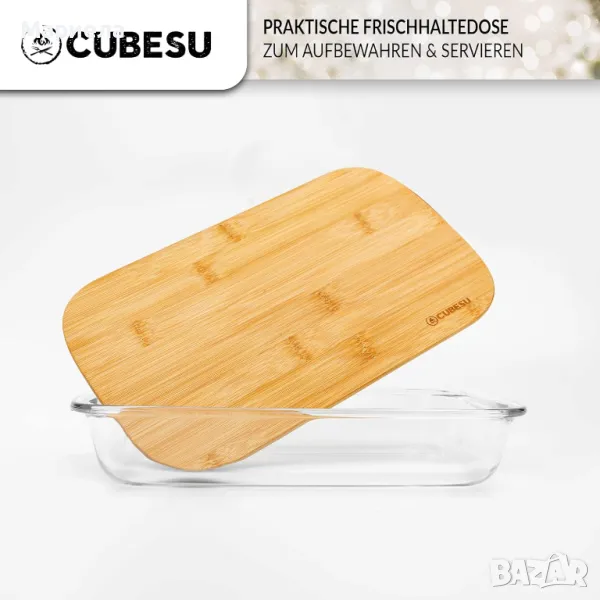 Немска Стъклена кутия за храна Cubesu с възможност за подреждане с нож и вилица за месо