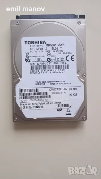 Продавам хард диск за лаптоп но става и за компютър 500GB., снимка 1 - Части за лаптопи - 48589824 Продавам хард диск за лаптоп но става и за компютър 500GB., снимка 2 - Части за лаптопи - 48589824 1/2
