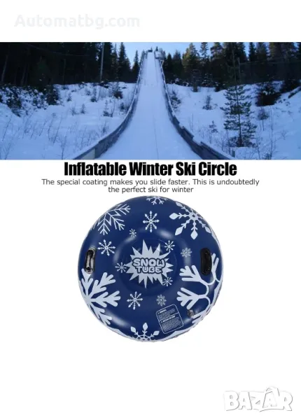 Надуваемият зимен ски кръг е изработен от екологично чист PVC материал, издържа на температури от -86 градуса по Фаренхайт, здрав и удароустойчив.