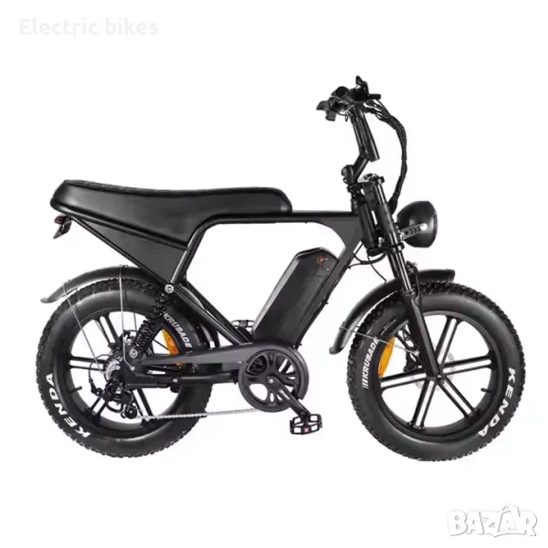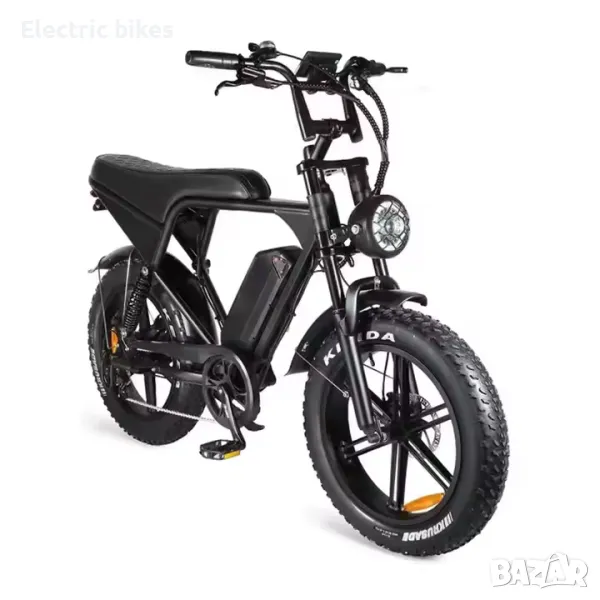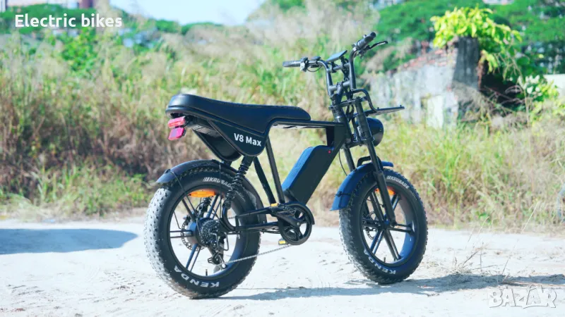 Последен модел електрически фатбайк с предно и задно окачване Electric V8 Max, мощен 1000W двигател, в комбинация с 15AH 48V сваляема батерия, с възможност за допълнителна задна седалка. Пробег с едно зареждане: до 80км в изцяло ел. режим/ до 150км в комбиниран режим.