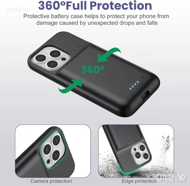 Мощен живот на зареждане от 7500 mAh и 360° защита: Калъф за зареждане с голям капацитет от 7500 mAh, за да добавите 200% живот на зареждане на вашия телефон, което идеално отговаря на ежедневните ви нужди от зареждане. Този калъф за батерии предпазва вашия мобилен телефон от ежедневни повреди: ① Повдигнатите рамки предлагат предна и повърхностна защита. ② Включен протектор от закалено стъкло за пълна предна защита.