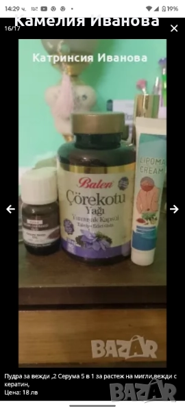 Мравчено олио за обезкосмяване- 5,50 лв,евтерпа спрей за гъбички по ноктите -14 лв,капсули черен кимион -22 лв ,