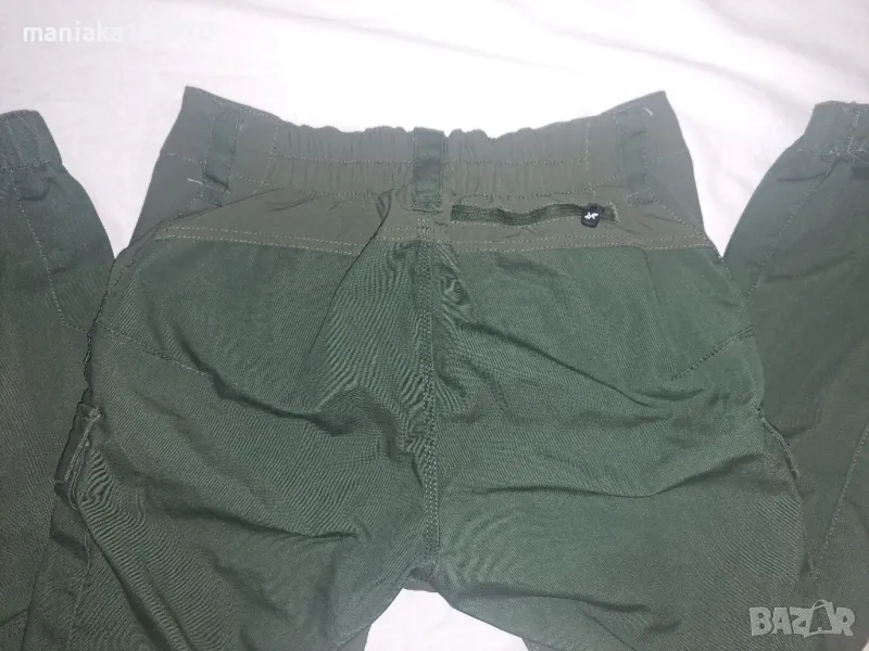 необходими зони.Здрави тройни шевове на ключовите места.Специални джобове на колената за поставяне на кори (наколенки).Цвят два нюанса на тъмно зеленото.
