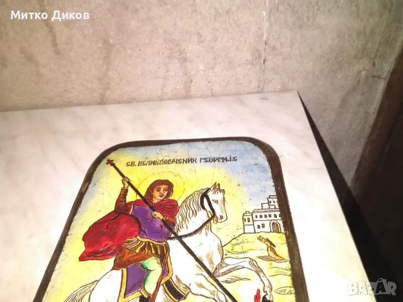 Икона нова Свети Георги ръчно направена ЕТ Лазарино на дърво 19х28смх9мм → Обява 48593260
