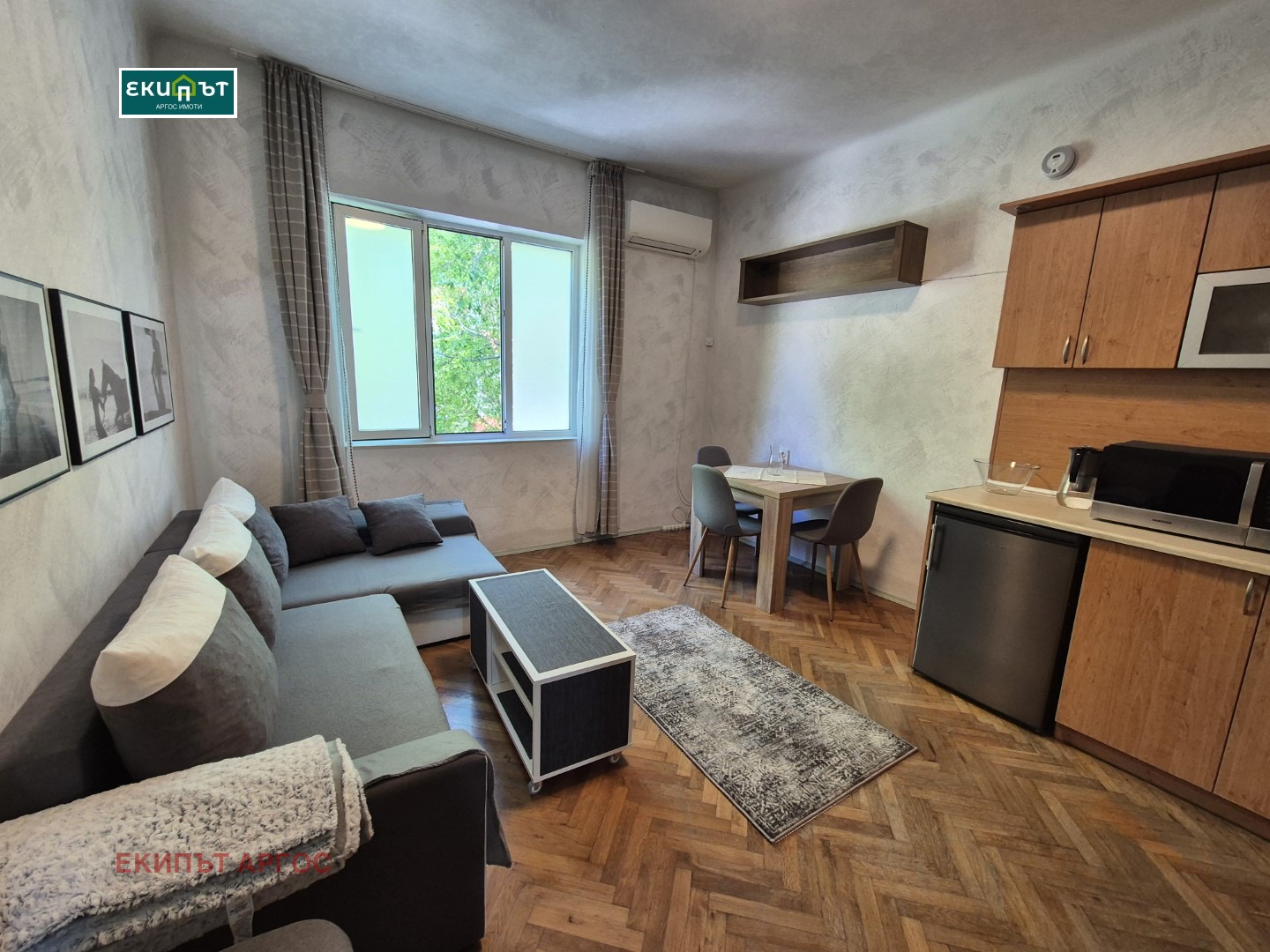 ЕКИПЪТ АРГОС ИМОТИ дава под наем Двустаен отлично обзаведен апартамент в Гръцка махала на метри от Морската градина. Състои се от дневен тракт с напълно обрудвана кухня оборудвана с бяла техника, мека мебел, спалня, баня с тоалет. Апартамента е оборудван с климатик, пералня със сушилня.