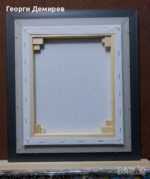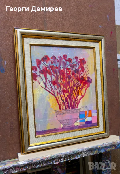 Акрилни бои върху платно. Размер на платното - 25см Х 30см. Размер на външна рамка - 33см Х 38см.
