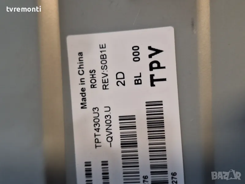 Power supply TPV 715G9324-P02-001-003M-PHILIPS 43PUS6523/12 43inc DISPLAY TPT430U3-QVN03.U REV.S0B1E борда е гарантирано работещ Демонтиран от телевизор PHILIPS модел 43PUS6523/12 със счупен дисплей TPT430U3-QVN03.U REV.S0B1E тествана от нашия техник Ремонт на всички марки съвременни телевизори