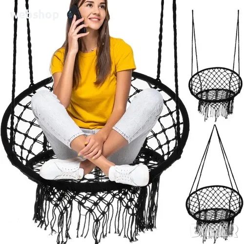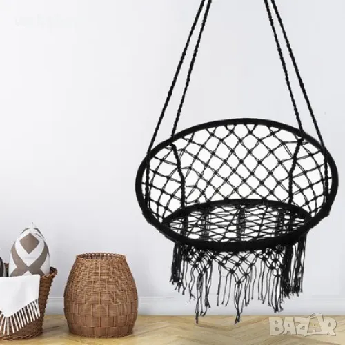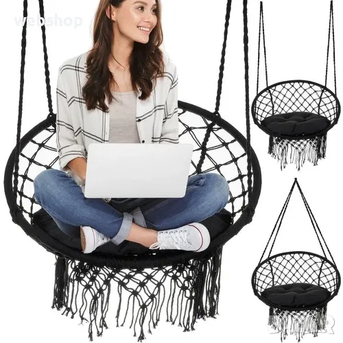 Висящата люлка тип гнездо е конструирана така, че да осигури възможно най-голям комфорт по време на почивка. Има висока облегалка с дължина 41см. Тази плетена люлка е изработена от памук с примеси на полиестер, което я прави мека и приятна на допир, а прекарването на времето върху нея е удоволствие. Здравата желязна рамка е покрита с въже, благодарение на което всеки елемент е обезопасен - люлката може да се използва както от възрастни, така и от деца. Естественият материал също така осигурява подходяща вентилация, което поддържа комфорта при използване на висящ стол дори в горещите дни.