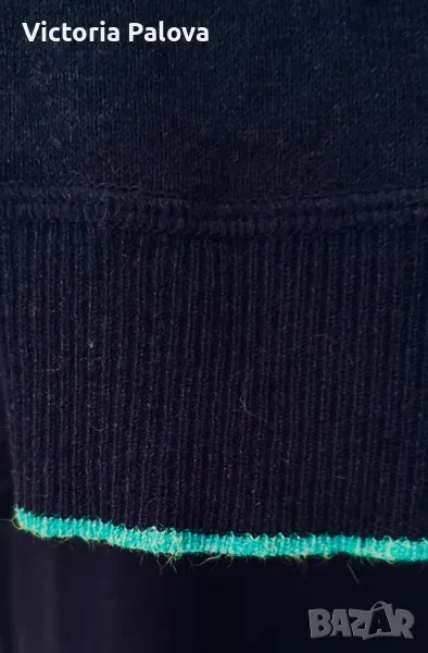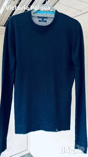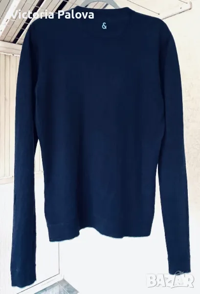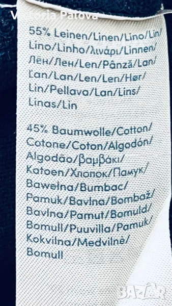 Много хубава качествена блуза , 55% лен, 45% памук. Цветът е тъмносин, логото на марката е отзад на гърба и също така и отпред .Рамо - 46см, ГО - 52см, дължина - 71см, блузата има разтегливост.
