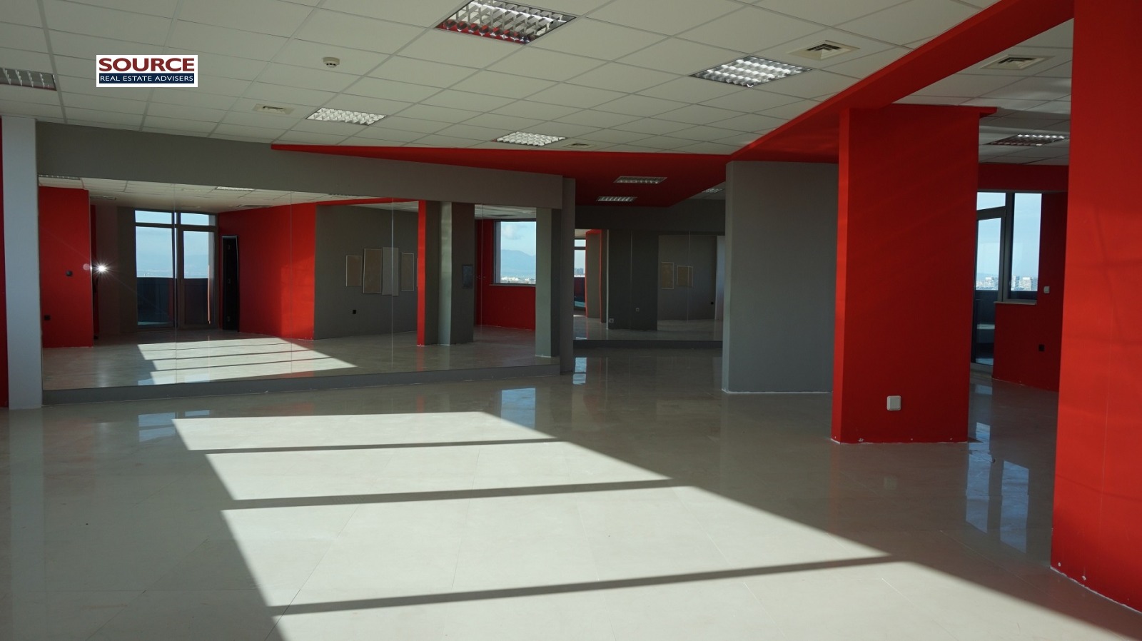 2. Разпределение: 1 голямо Open space помещение, 3 отделни работни помещения преградени със стъклени и гипсокартонени преградни стени, рецепция, сървърно помещение, 4 wc, тераса. Офисът може да бъде изцяло с Open space разпределение или допълнително преграден според изискванията на Наемателя.