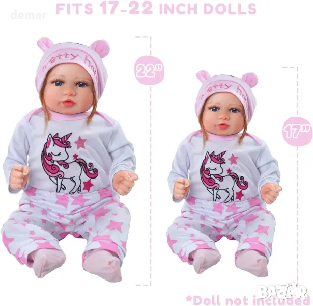 Комплектът аксесоари дрехи за кукли Reborn включва преносима и издръжлива кошара с достатъчно място за кукли и аксесоари, осигуряваща лесна игра в движение. Изработен от меки, висококачествени тъкани, той предлага комфортно и безопасно изживяване за децата, с аксесоари, които могат да се перат (с изключение на бутилката). Предназначен за 17-22 инча бебета и преродени кукли, комплектът е идеален подарък за специални поводи. Комплектът от 8 части включва кош, горнище с дълъг ръкав, панталони, шапка, чорапи, плюшена играчка, шише за хранене и биберон, засилващи въображението. (Куклата не е включена.)