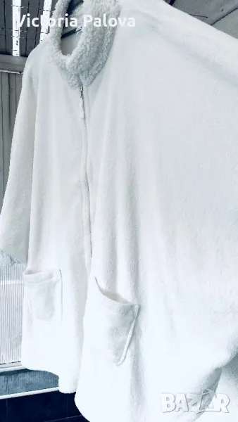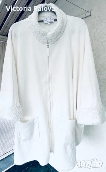 Божествена мекота, красива топла и удобна дреха за у дома , много голяма , с преден цип и джобове, лесно се поддържа, нежна и пухкава. ГО - 108см, дължина - 90см.