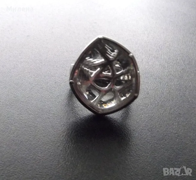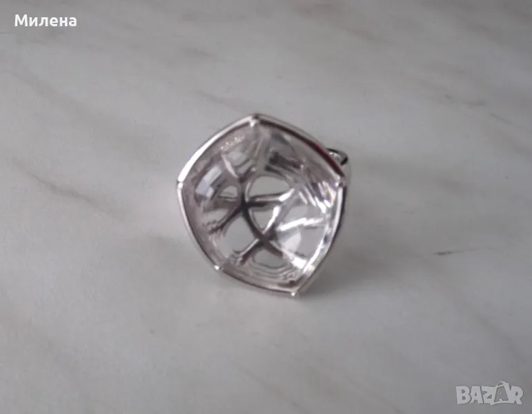 Пръстенът е в цвят сребро с камък от планински кристал.