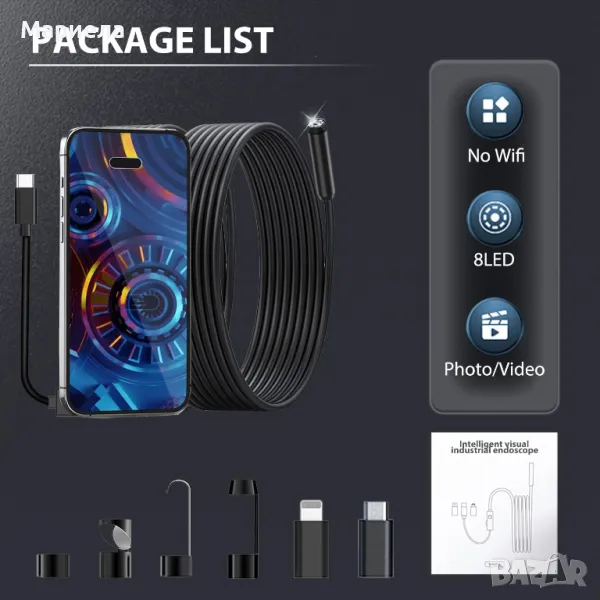 Ендоскопа е закупен от разпродажба в Германия и е НОВ !Лесен е за използване, включете и вземете изображения. Този ендоскоп не трябва да използва wifi сигнал, няма нужда да се притеснявате за нестабилна връзка и замръзване на екрана.