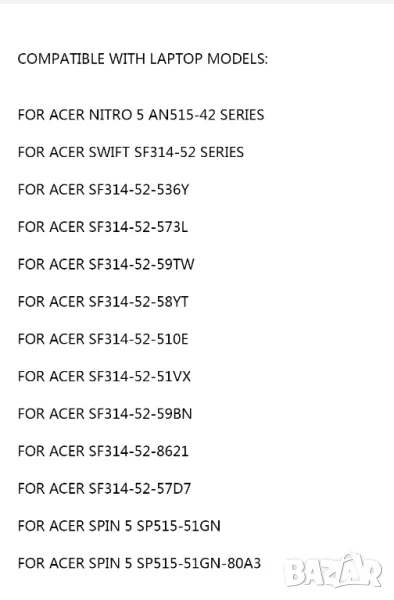 Нова батерия за лаптопи модел ACER, съвместима със следните модели - N17C1 PH315-51 PH317-51 PH317-52 Nitro 5 AN515 AN515-53 4000mAh, напрежение 15.2V, издръжливост над 5 часа, цената по всички сайтове е над 100лв.