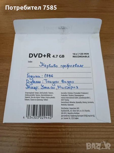 Всички филми са дигитализирани на DVD (Лична колекция) преведени на Български език (дублирани). Дисковете са формат - ДВД с МЕНЮ, което съдържа: Филм, резюме на филма и саундтрак към резюмето, тръгват дори на двд плеари които не поддържат DivX. Повечето дискове са записани и запечатани (Чисто нови) Надраскани дискове няма, нито такива които да не отговарят на описанието на хартиения плик както виждате на снимките. Цената е за филм. Всички налични заглавия в описанието. Изпращам с Еконт (10% отстъпка) или Спийди (10% отстъпка) за разходите по транспорта.